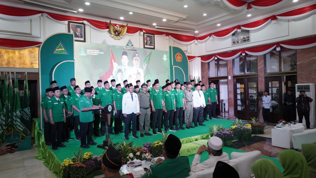 Surabaya, – Pengurus Pimpinan Cabang (PC) Gerakan Pemuda (GP) Ansor Kota Surabaya masa khidmat 2024-2029 resmi dilantik di Gedung Balai Kota Surabaya, Rabu (12/11/2025). Pelantikan ini diawali dengan kirab 31 Bendera Pataka GP Ansor dalam rangka memperingati Hari Santri 2025 dan Hari Pahlawan 2025.